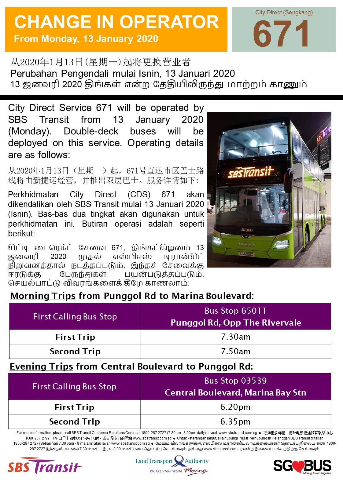 Sbs Transit To Operate City Direct Services 671 And 672 From 13 January 2020 Sbstransit
